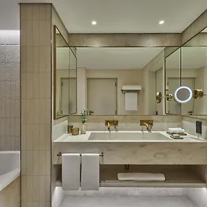 Furnished with a writing table, the 182 rooms also include such conveniences as a flat-screen TV with satellite channels, along with a minibar fridge, coffee and tea makers. Air conditioning are featured for guests' comfort. Bathrooms inlude a bidet, a separate toilet, and a shower, and such fine comforts as shower caps and bath sheets. Enjoy views of the garden, while staying at the Erth Abu Dhabi.