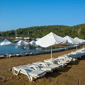 The 5-star beachfront Green Bay Resort & Spa Guvercinlik boasts a location about 10 minutes' walk from Aegean Sea as well as access to a sandy beach with sun loungers and free beach cabanas. Nestled in a prime touristic area, the comfortable resort with 218 rooms offers a swimming pool and canoeing, lawn tennis, and basketball for those enjoying an active lifestyle.