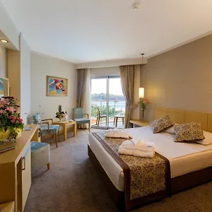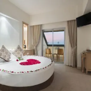 The 5-star family-friendly Saphir Resort & Spa Okurcalar, located just 12 minutes on foot from the Water Planet Aqua Park, offers a seasonal outdoor swimming pool and Wi-Fi in public areas. The beachfront resort offers a banquet hall and sits within a 7-km distance of Alara Medieval Castle.