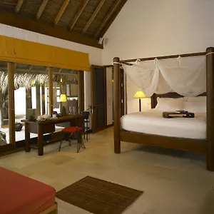 Overlooking the sea, some rooms at the Soneva Fushi Eydhafushi feature a fireplace and hardwood flooring furnished with a writing table and a mirror. They come equipped with a minibar fridge, coffee and tea making equipment for self-catering along with free wireless internet and a flat-screen TV with satellite channels for business and leisure. Private bathrooms include nice touches such as hair dryers and toiletries.